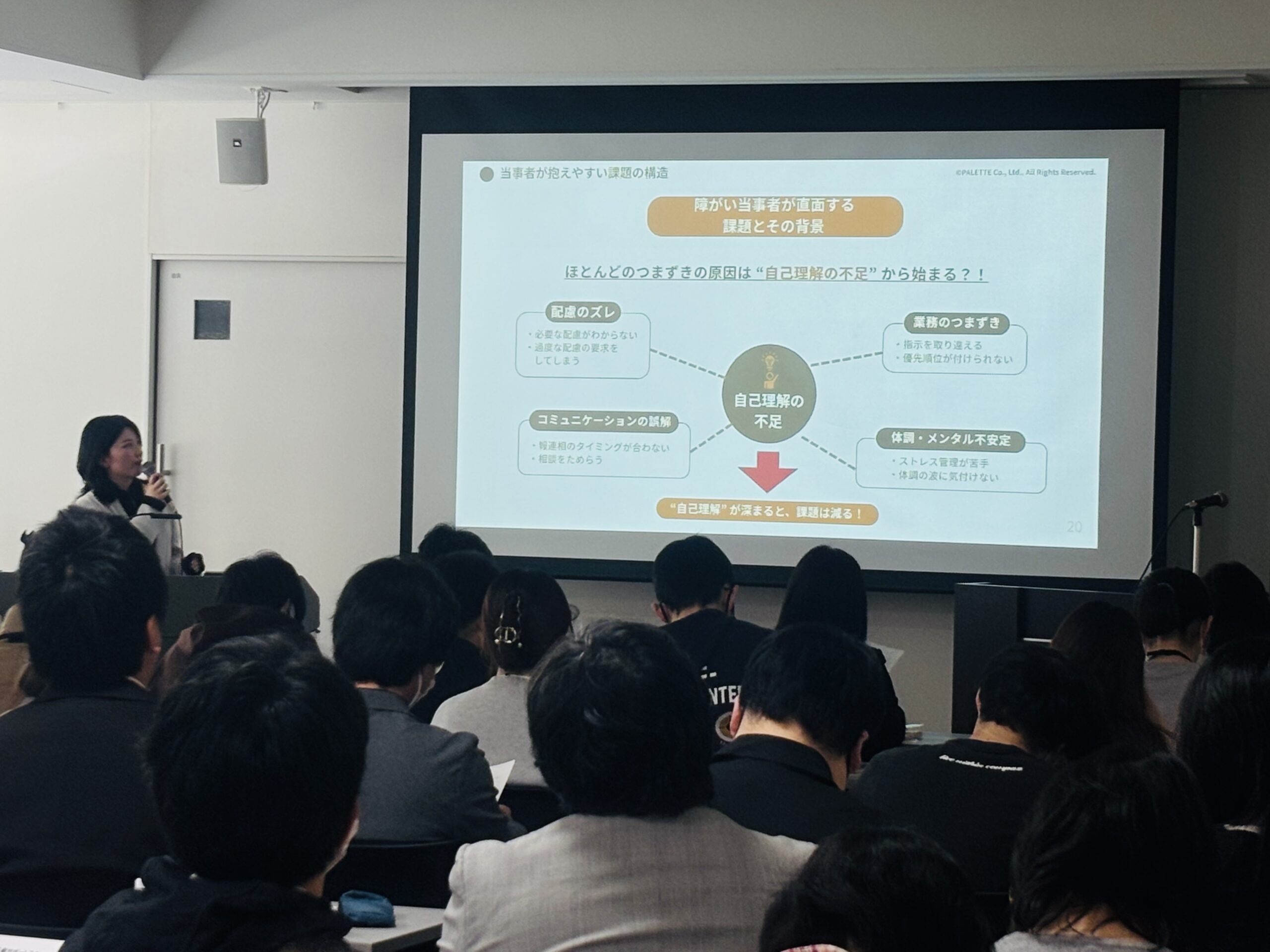本イベントは、企業理解・職場理解・支援理解の3つの視点から構成され、参加者の皆さまにとって「働く」ことを多角的に考える機会となりました。今後もパレットは、ディーキャリア様をはじめとする支援機関と連携し、誰もが安心して働き続けられる社会の実現に貢献してまいります。